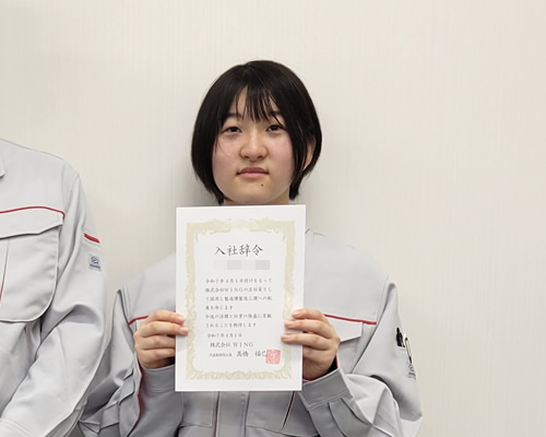 私がWINGに入社を決めたのは、「もくもく作業」ができる仕事がしたかったからです。 学生時代に接客業のアルバイトも経験しましたが、自分には合わないと感じました。 工場見学をした際、WINGの製造現場が流れ作業ではなく一つひとつの作業に集中して取り組める環境だと知って、「ここだ!」と思いました。 特に溶接に強く惹かれたのが決め手ですね。 先輩方が丁寧に教えてくださる優しい雰囲気も、入社を決める大きな要因になりました。